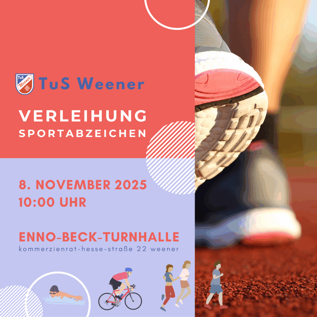 Am 08. November um 10:00 Uhr ist es wieder so weit – in der Enno-Beck-Halle ehren wir alle, die in diesem Jahr ihr Sportabzeichen mit Einsatz, Ausdauer und Teamgeist geschafft haben! 💪✨