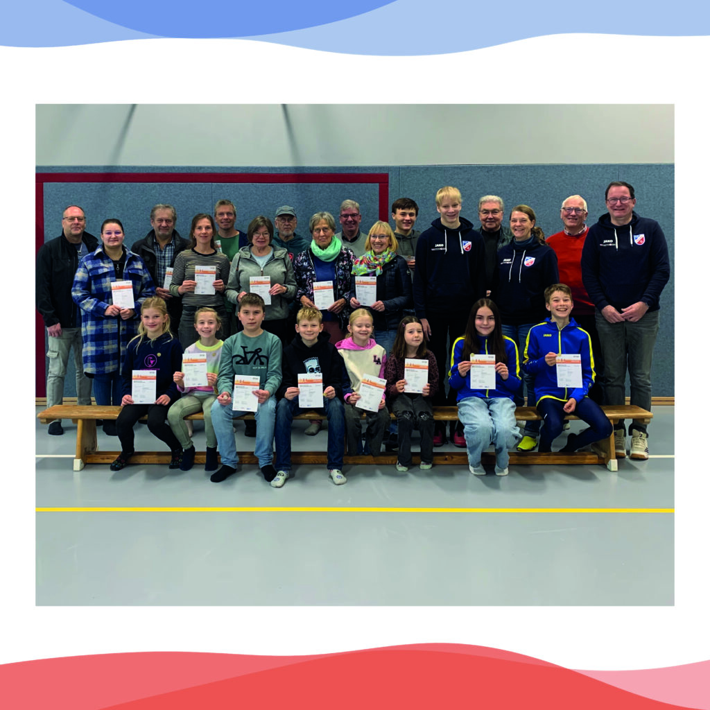 In der Enno-Beck-Halle des TuS Weener haben wir die diesjährigen Sportabzeichen verliehen. Insgesamt konnten wir 51 Sportabzeichen abnehmen – 35 Erwachsene und 16 Kinder stellten sich den sportlichen Herausforderungen.